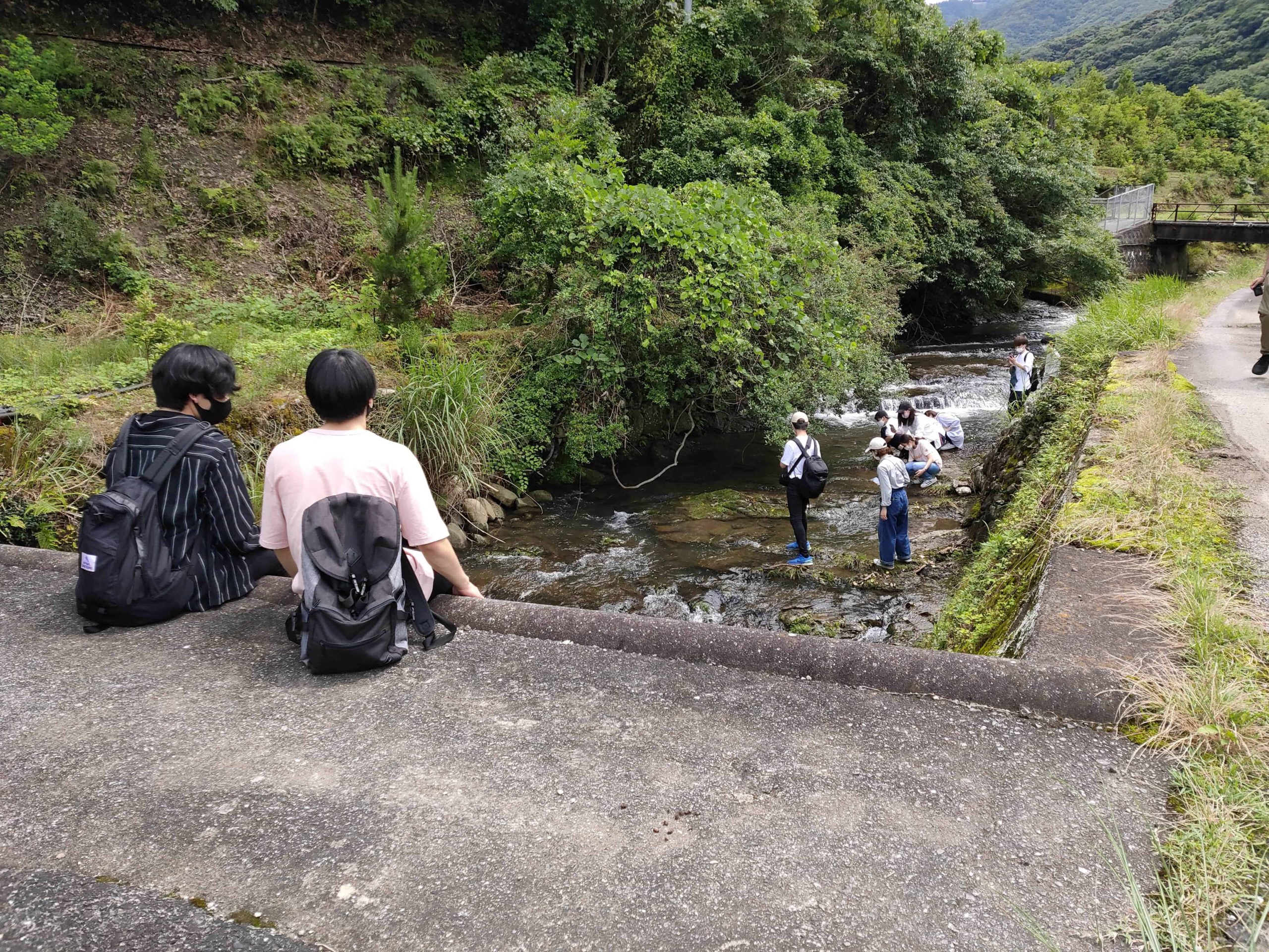 蒸し暑い中でのフィールドワークだったので、川の水がとても冷たく感じた様子。