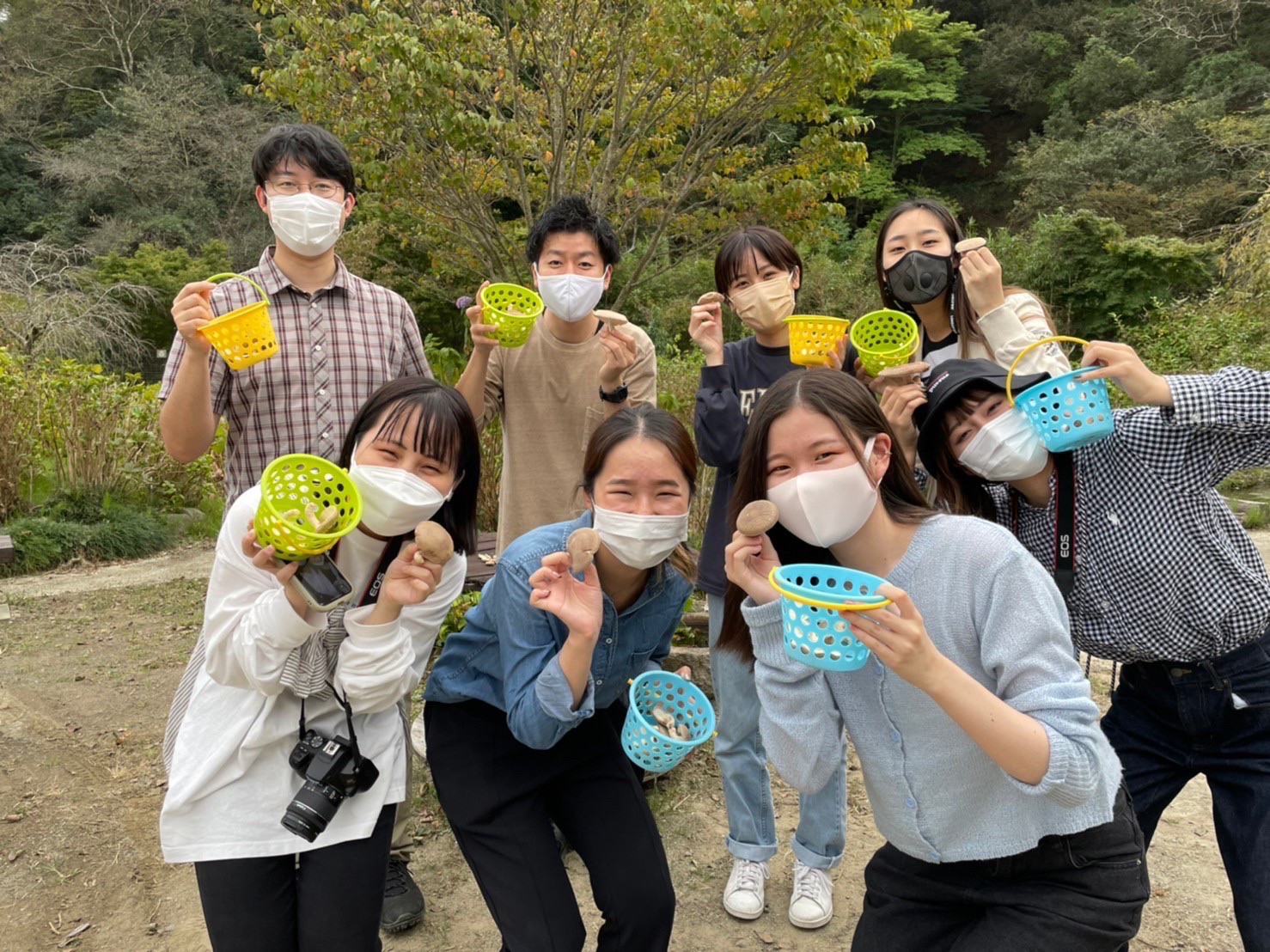 2021年10月に、地域おこし協力隊の谷口さんがあわじ花山水で行われていた「原木しいたけ栽培」を継業し、プレオープンイベントを開催中だったため、学生らも収穫体験を行いました。