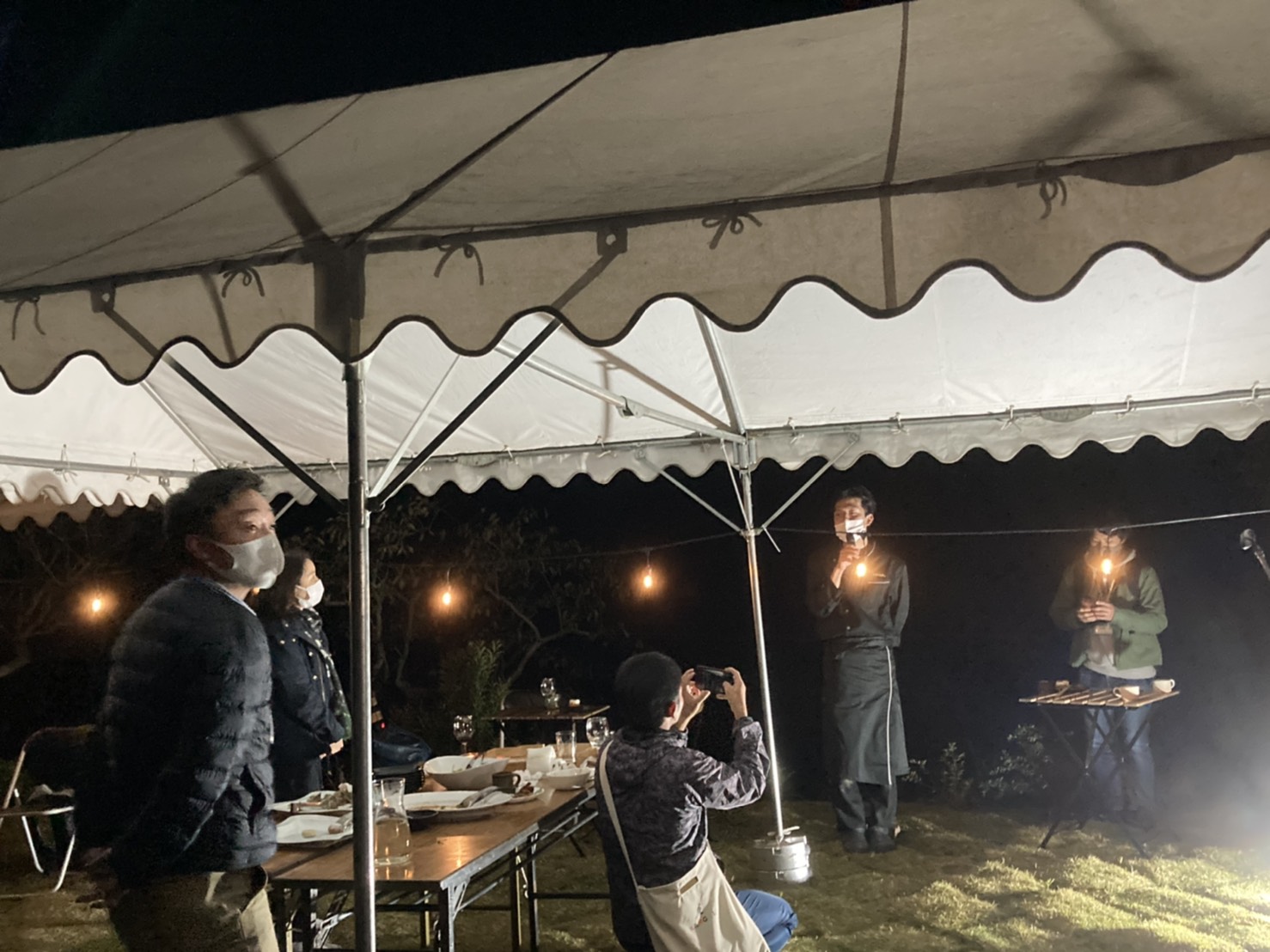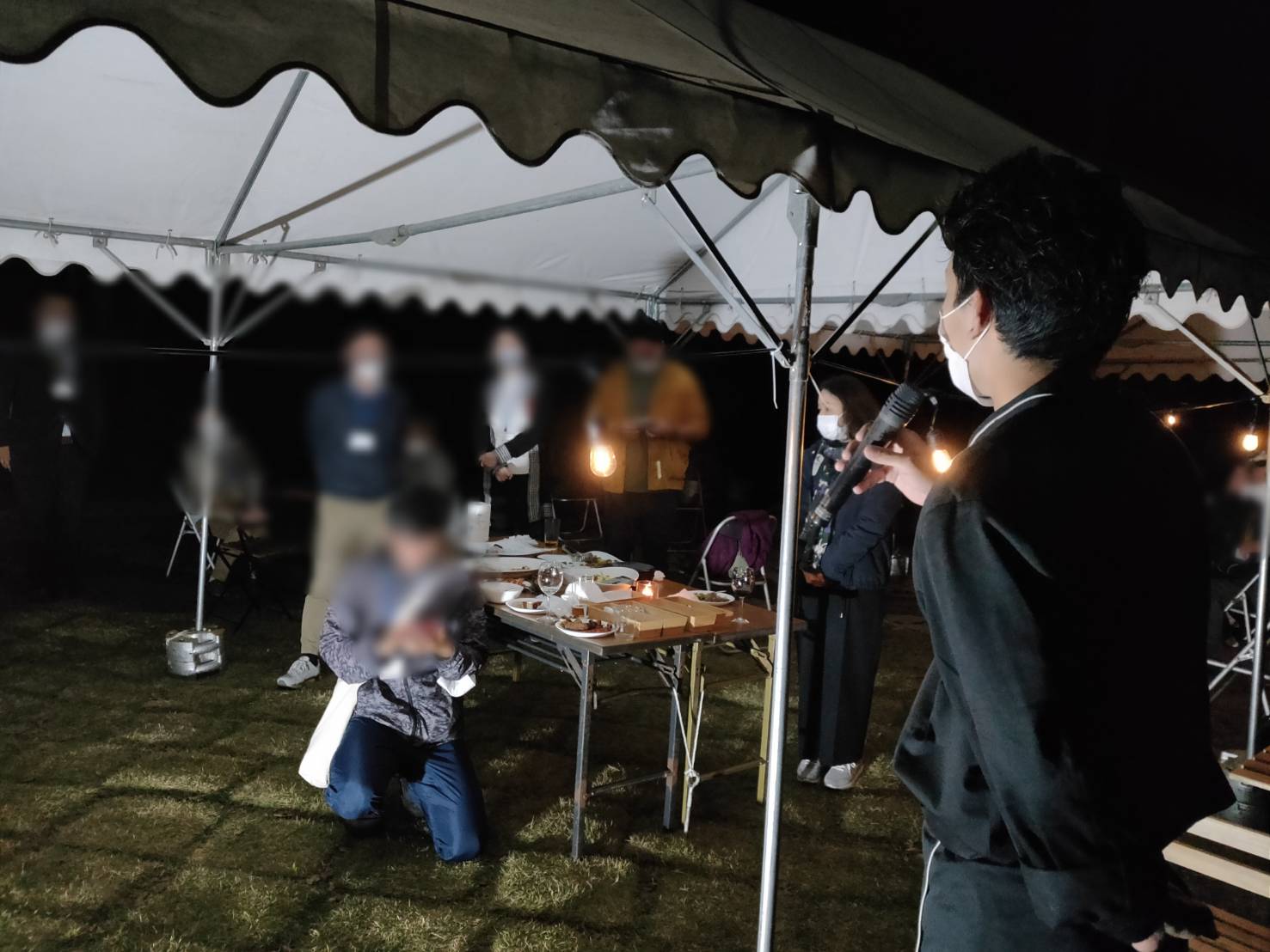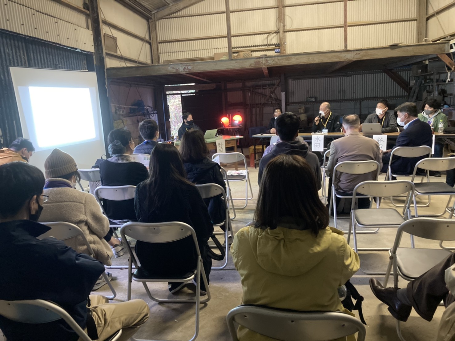 この日星空が広がる竹原では、放射冷却の影響もあり大変冷え込んでいましたが、座談会終了後に関係者と地方創生実践塾参加者のみなさんとの交流会が行われました。