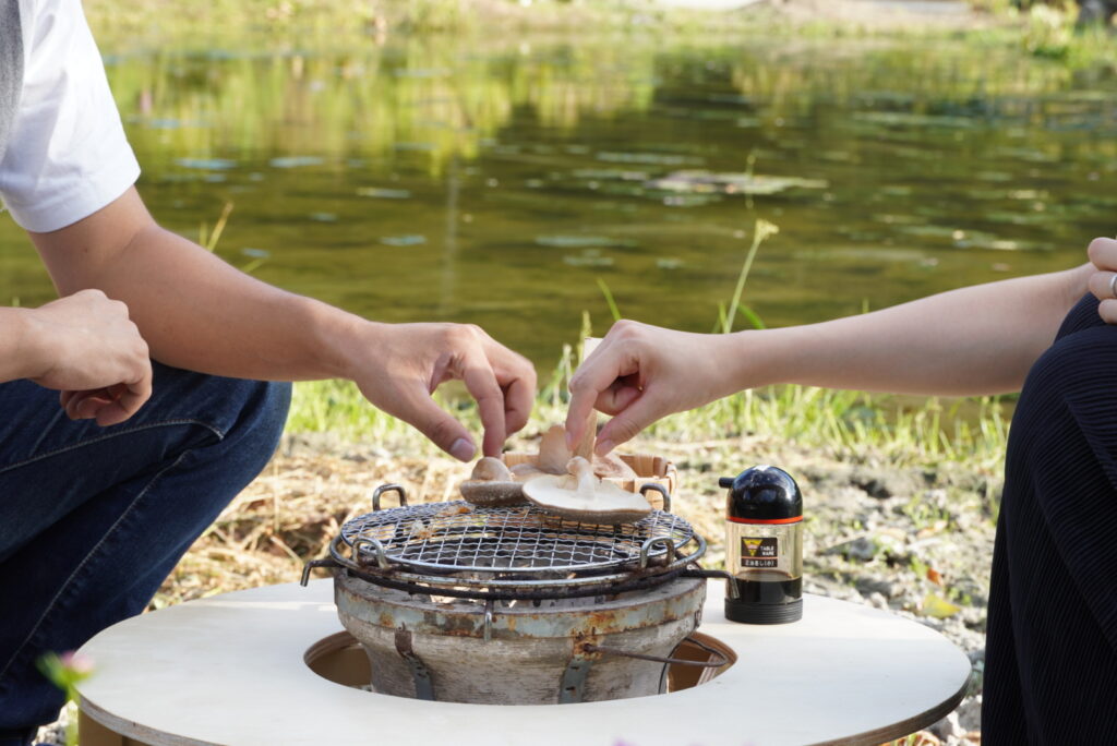 竹原集落で40年続く原木椎茸づくり。原木から生える大きな椎茸をご自身で収穫し、その場で召し上がることができます。