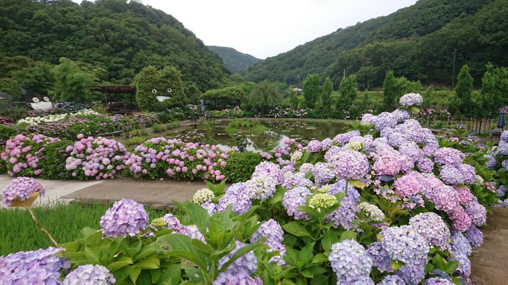 約70種類4,000株のあじさいが咲き誇るあじさい園。シーズンには1日200名以上が訪れる観光名所。2022年に全国花のまちづくりコンクールにて農林水産大臣賞を受賞。